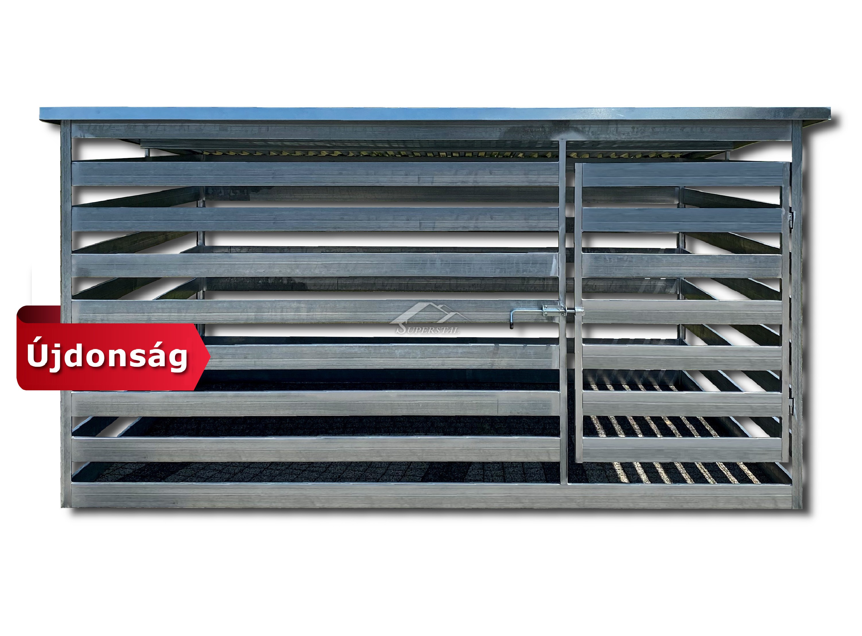 Kennel vízszintesen szerelt horganyzott zártszelvénnyel ( zárTszelvény mérete: 100 x 20 mm ). A rácsok közti távolság kb. 9cm.