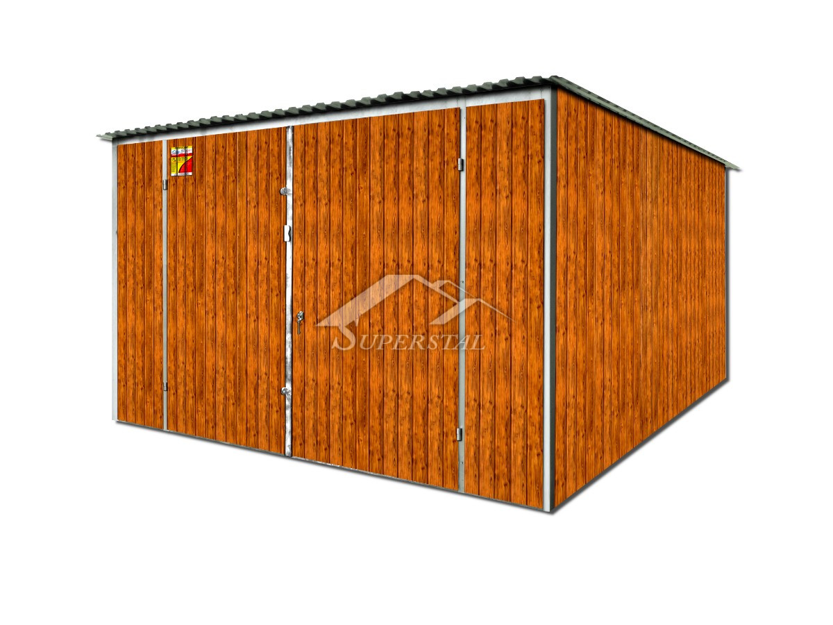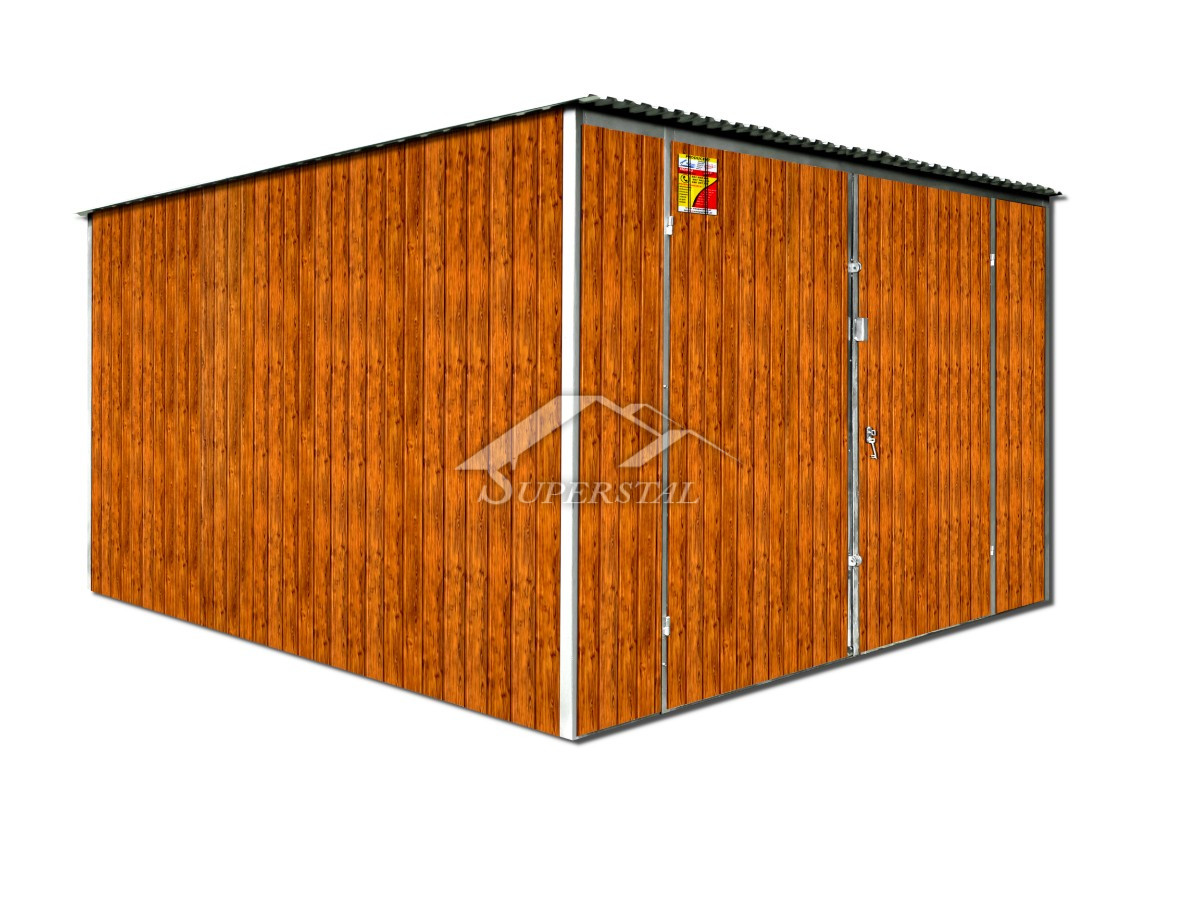 FAMINTÁS LEMEZGARÁZS 5x6 - HÁTRA LEJTŐ TETŐ , KÉTSZÁRNYÚ KAPULemezgarázs famintás lemezborítással a természetbe beolvadó színvilág és praktikus fémtermékek kedvelőinek!