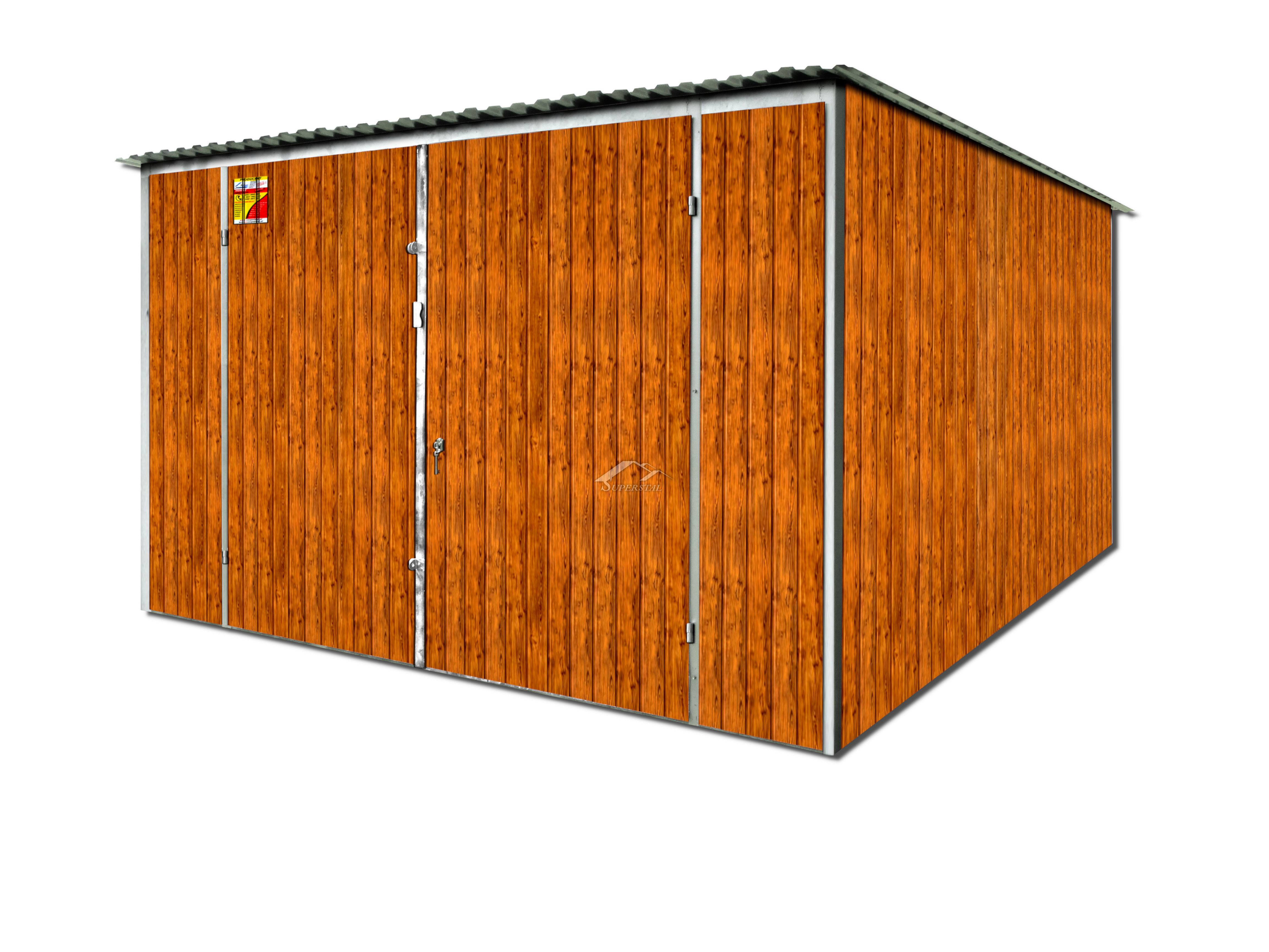 Nagyon szép famintázat tökéletesen illeszkedik bármilyen környezetbe, eredeti jelleget kölcsönözve a lemezgarázsnak. A gyártási folyamatban felhasznált tartós megbízható acél anyagok pedig hozzájárulnak az általunk gyártott garázsok tartósságához, megbízhatóságához hosszú éveken keresztül.