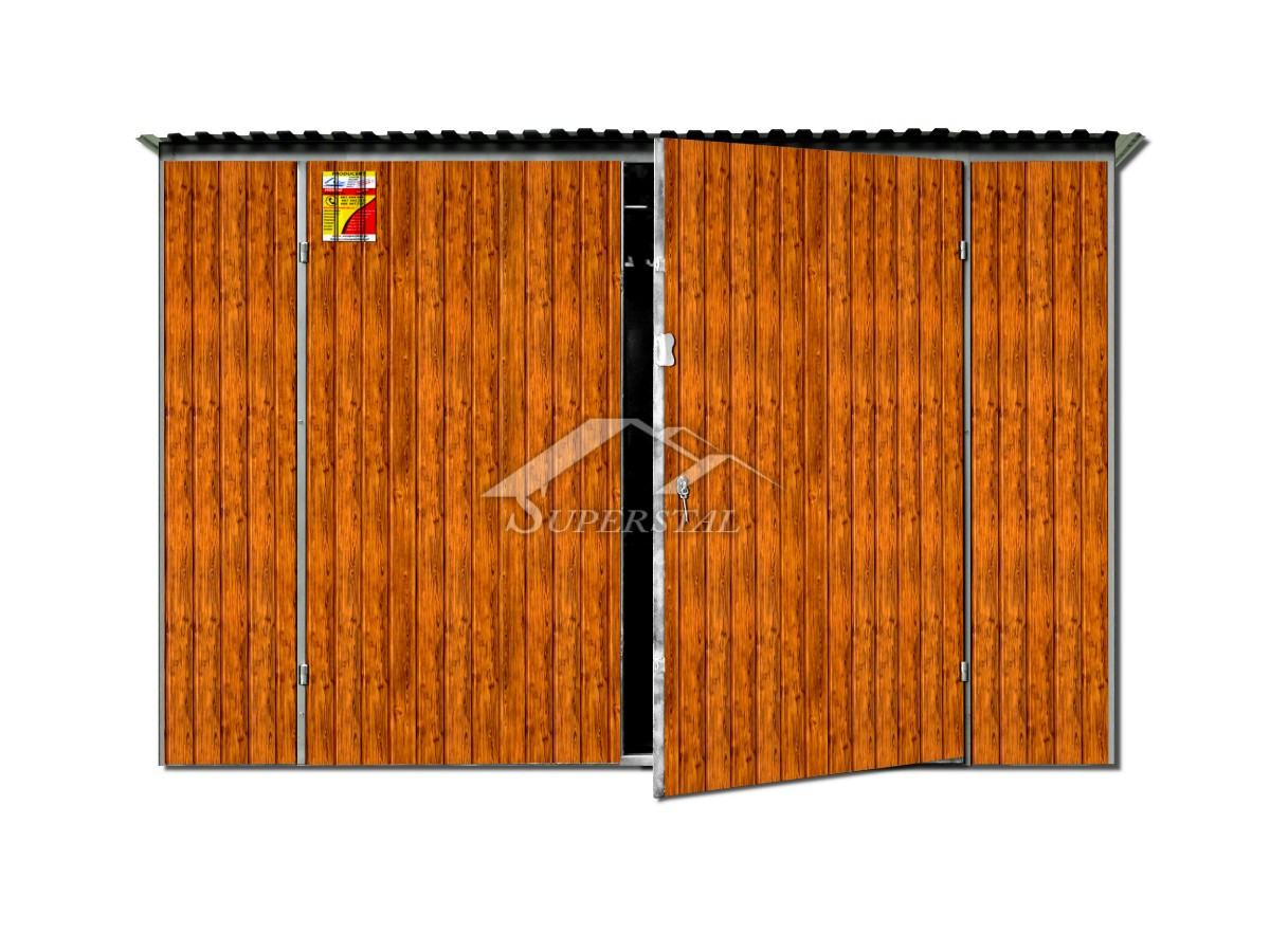 Nagyon szép famintázat tökéletesen illeszkedik bármilyen környezetbe, eredeti jelleget kölcsönözve a lemezgarázsnak. A gyártási folyamatban felhasznált tartós megbízható acél anyagok pedig hozzájárulnak az általunk gyártott garázsok tartósságához, megbízhatóságához hosszú éveken keresztül.