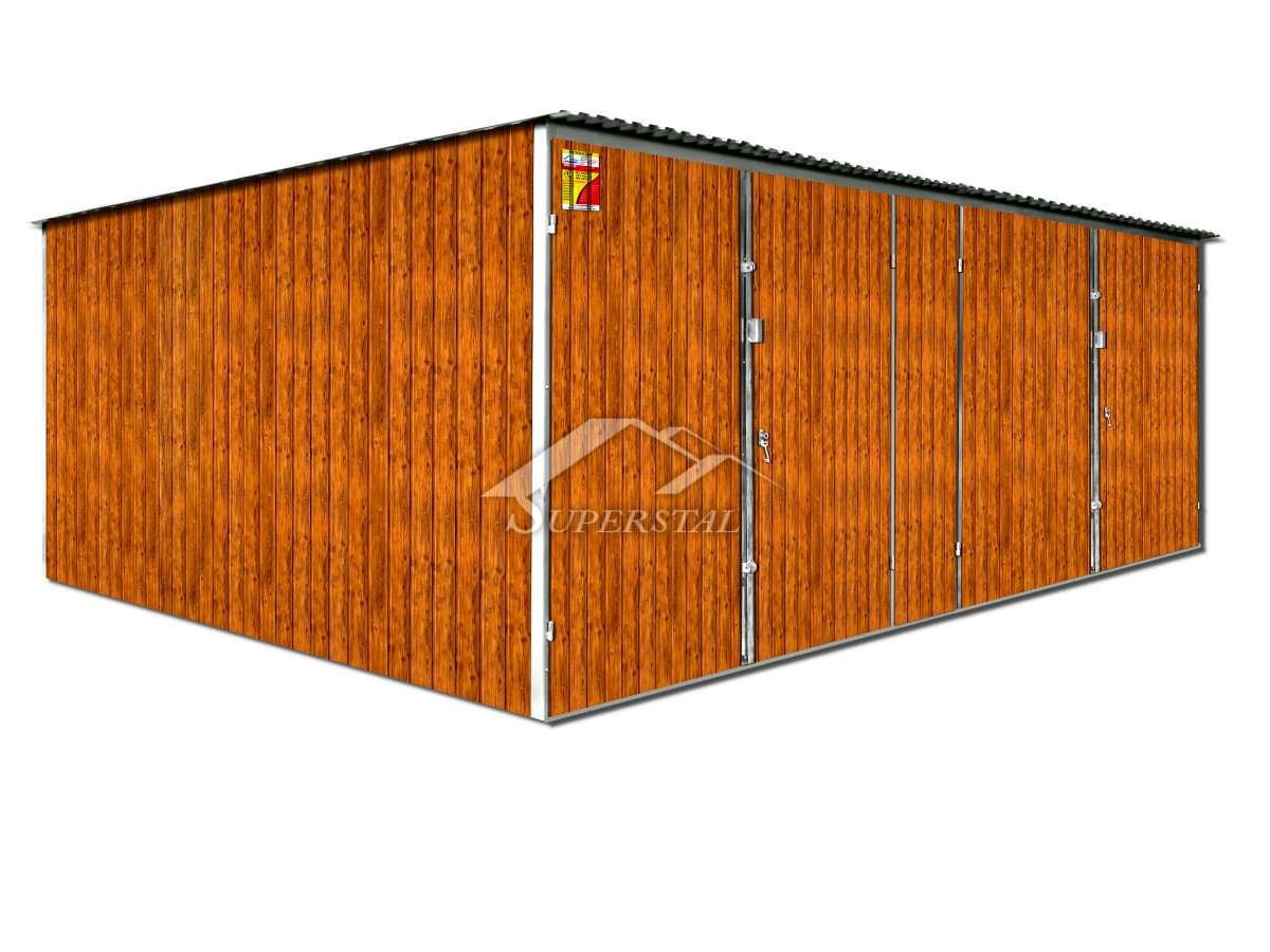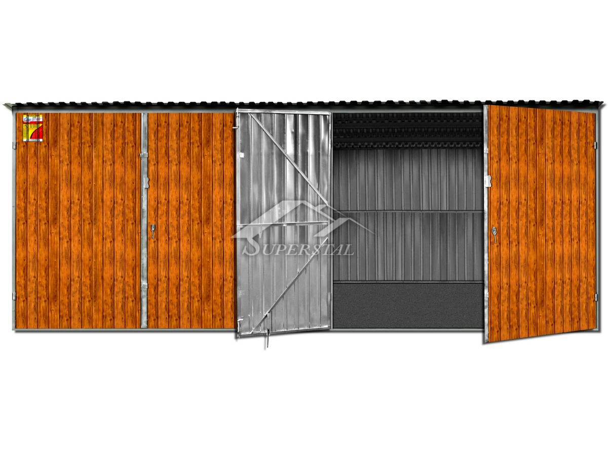 FAMINTÁS LEMEZGARÁZS 7x7 - HÁTRA LEJTŐ TETŐ , 2 x KÉTSZÁRNYÚ KAPULemezgarázs famintás lemezborítással a természetbe beolvadó színvilág és praktikus fémtermékek kedvelőinek!