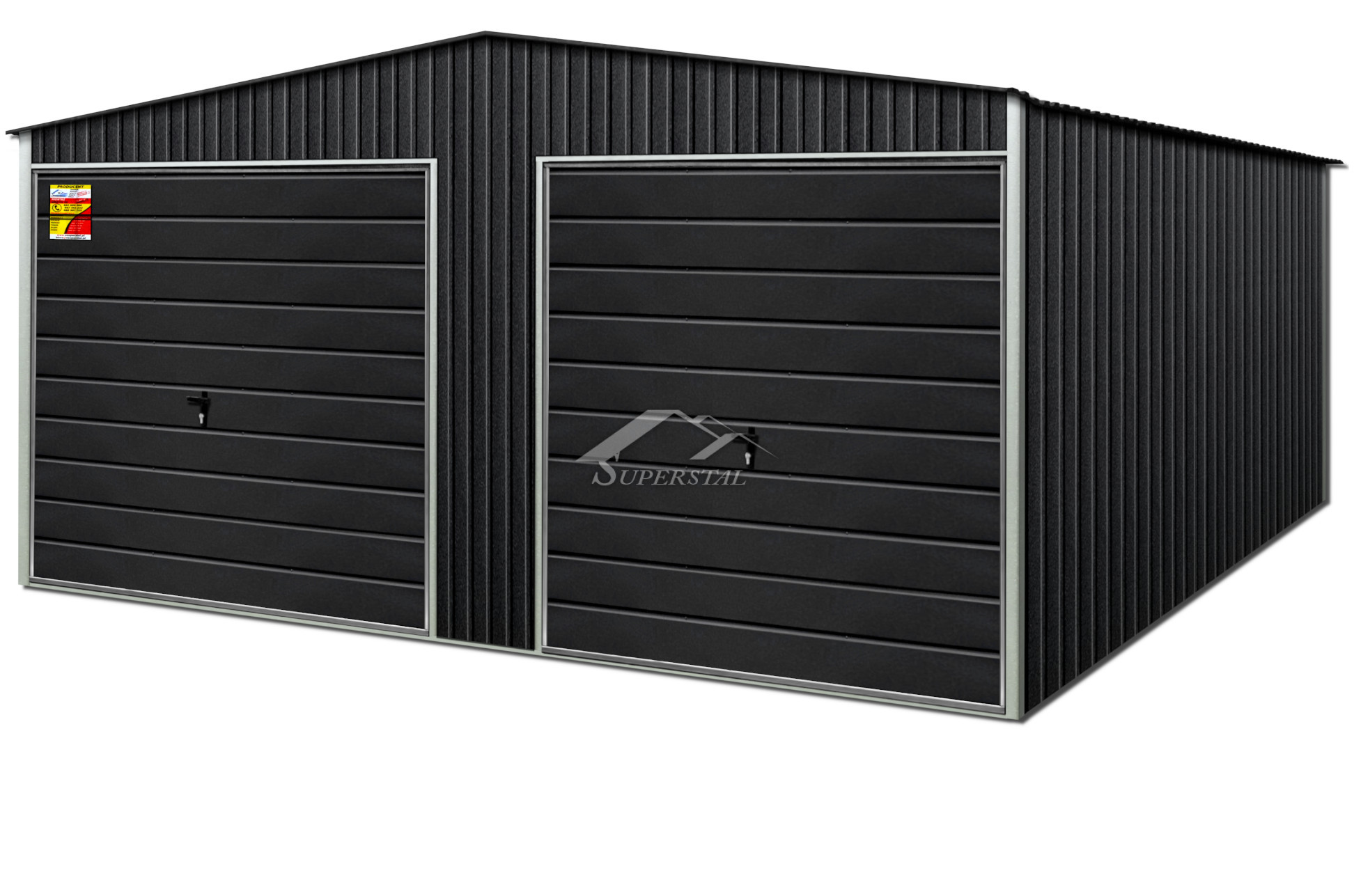 LUX LEMEZGARÁZS GRAFIT SZÍNBEN 7X9 – KÉT OLDALRA LEJTŐ TETŐ, BILLENŐKAPU