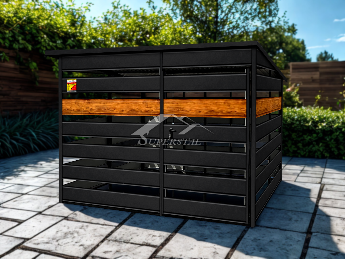 SZEMETESKUKA TÁROLÓ SMK 3X3M SZÉLES VÍZSZINTES PANELLAL MATT FEKETE SZÍNBEN FAMINTÁS BETÉTTELSzeretnéd frissíteni házad környezetét? Szeretnéd ha a szemetes kukatárolód nem csak funkcionális, hanem esztétikus és stílusos lenne?