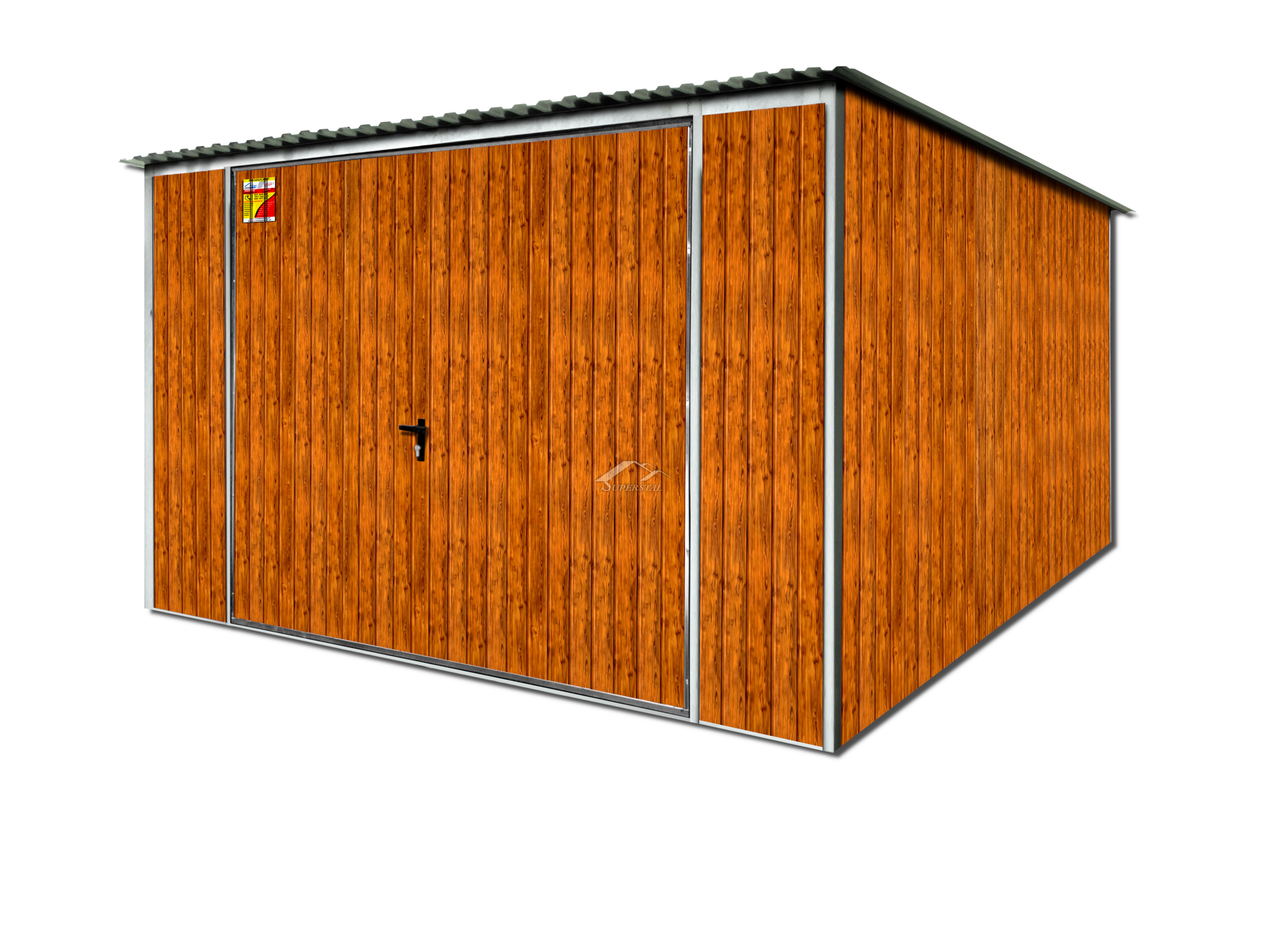 Nagyon szép famintázat tökéletesen illeszkedik bármilyen környezetbe, eredeti jelleget kölcsönözve a lemezgarázsnak. A gyártási folyamatban felhasznált tartós megbízható acél anyagok pedig hozzájárulnak az általunk gyártott garázsok tartósságához, megbízhatóságához hosszú éveken keresztül.