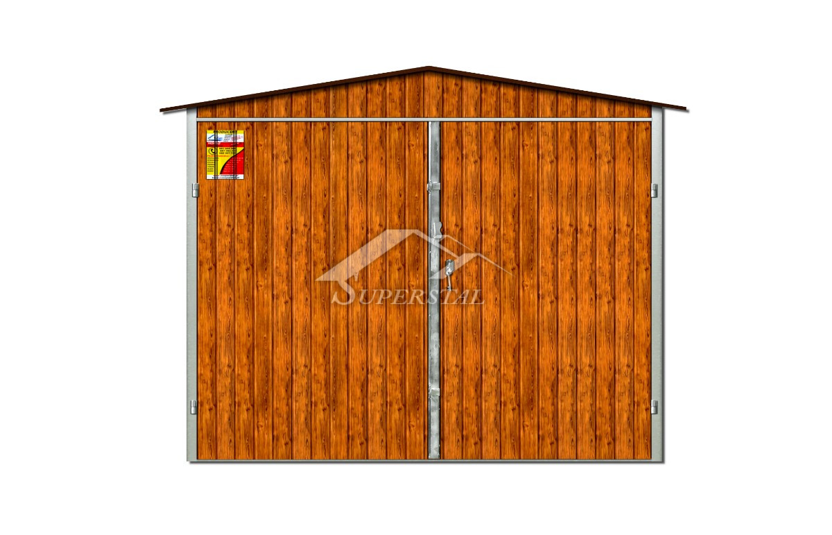 Nagyon szép famintázat tökéletesen illeszkedik bármilyen környezetbe, eredeti jelleget kölcsönözve a lemezgarázsnak. A gyártási folyamatban felhasznált tartós megbízható acél anyagok pedig hozzájárulnak az általunk gyártott garázsok tartósságához, megbízhatóságához hosszú éveken keresztül.