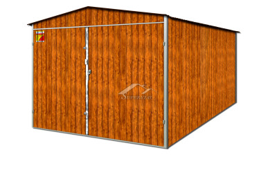 FAMINTÁS LEMEZGARÁZS 2x5 - KÉT OLDALRA LEJTŐ TETŐ, KÉTSZÁRNYÚ KAPULemezgarázs famintás lemezborítással a természetbe beolvadó színvilág és praktikus fémtermékek kedvelőinek!