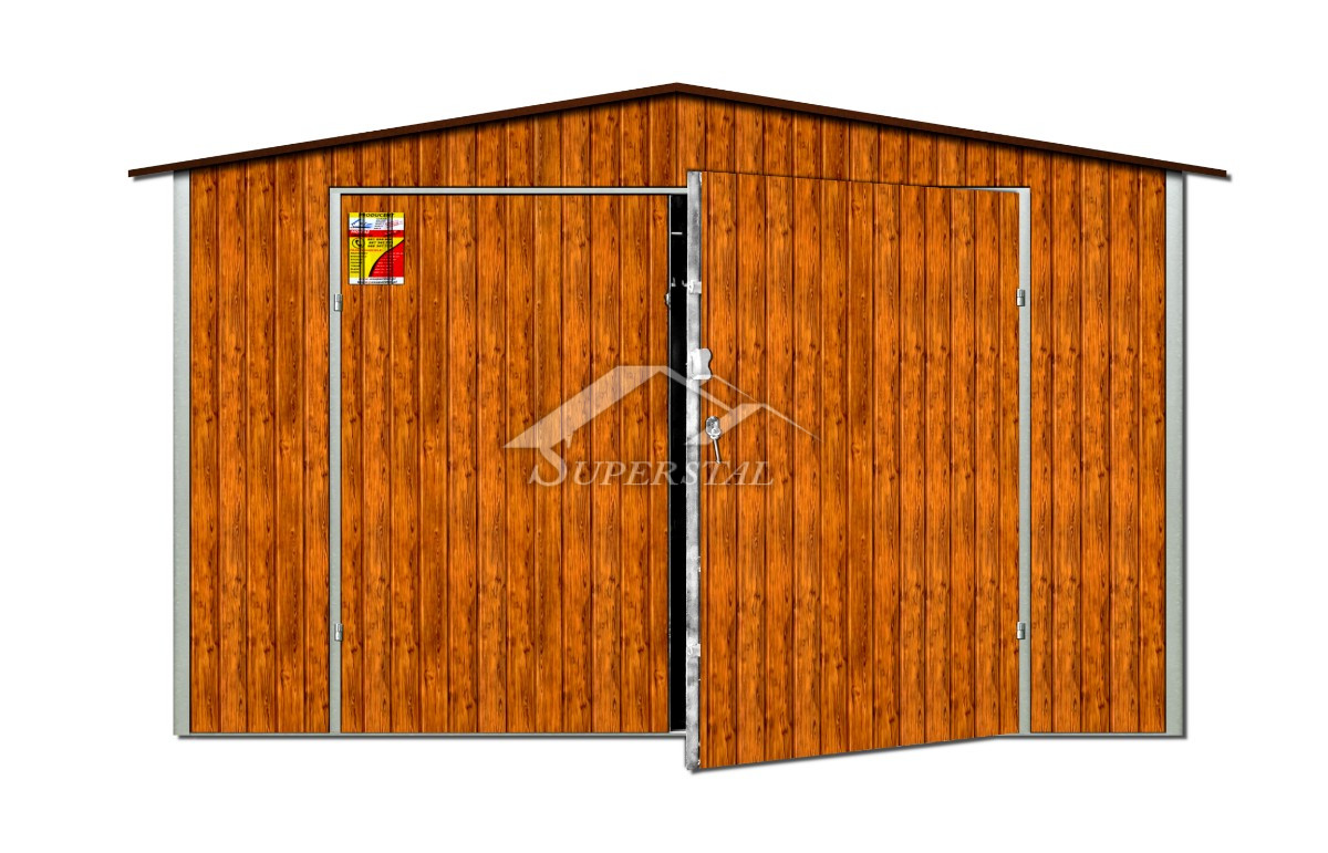 Nagyon szép famintázat tökéletesen illeszkedik bármilyen környezetbe, eredeti jelleget kölcsönözve a lemezgarázsnak. A gyártási folyamatban felhasznált tartós megbízható acél anyagok pedig hozzájárulnak az általunk gyártott garázsok tartósságához, megbízhatóságához hosszú éveken keresztül.