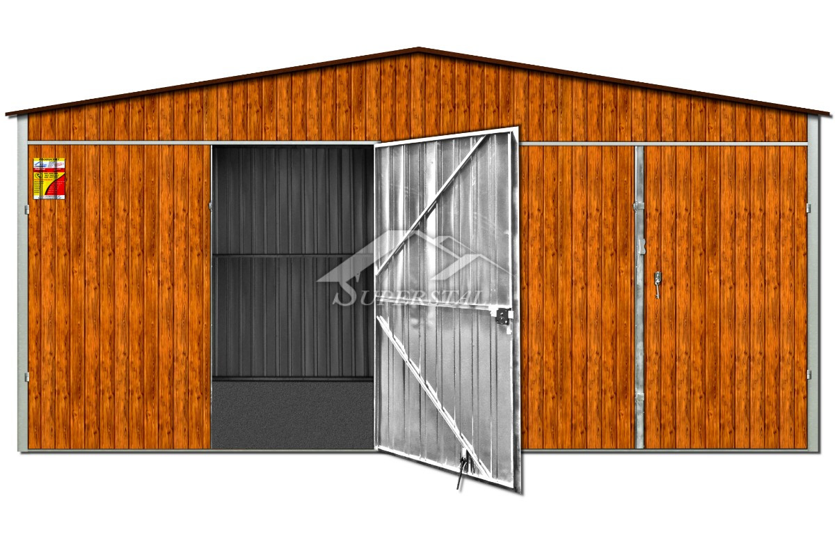Nagyon szép famintázat tökéletesen illeszkedik bármilyen környezetbe, eredeti jelleget kölcsönözve a lemezgarázsnak. A gyártási folyamatban felhasznált tartós megbízható acél anyagok pedig hozzájárulnak az általunk gyártott garázsok tartósságához, megbízhatóságához hosszú éveken keresztül.
