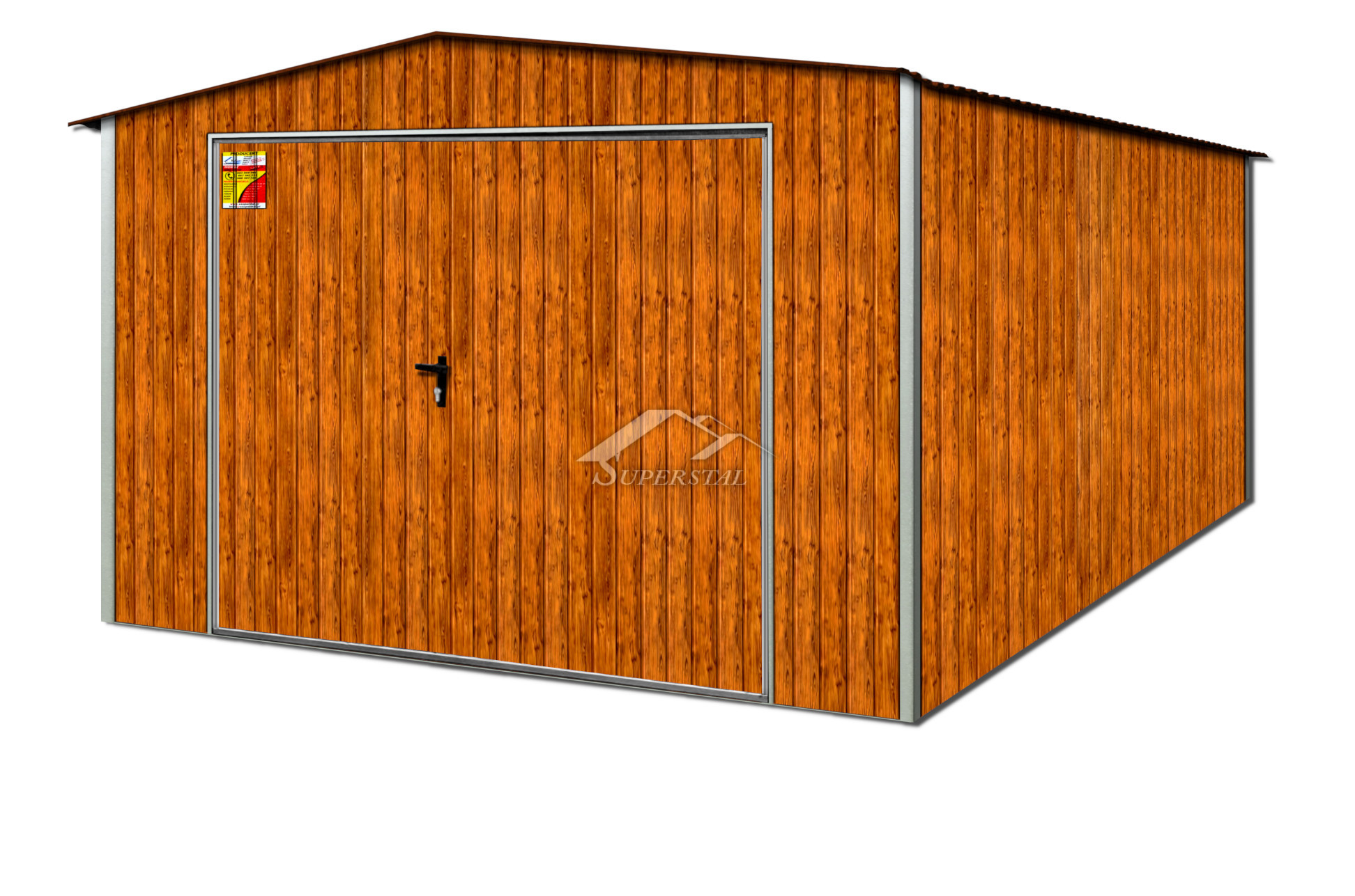 Nagyon szép famintázat tökéletesen illeszkedik bármilyen környezetbe, eredeti jelleget kölcsönözve a lemezgarázsnak. A gyártási folyamatban felhasznált tartós megbízható acél anyagok pedig hozzájárulnak az általunk gyártott garázsok tartósságához, megbízhatóságához hosszú éveken keresztül.