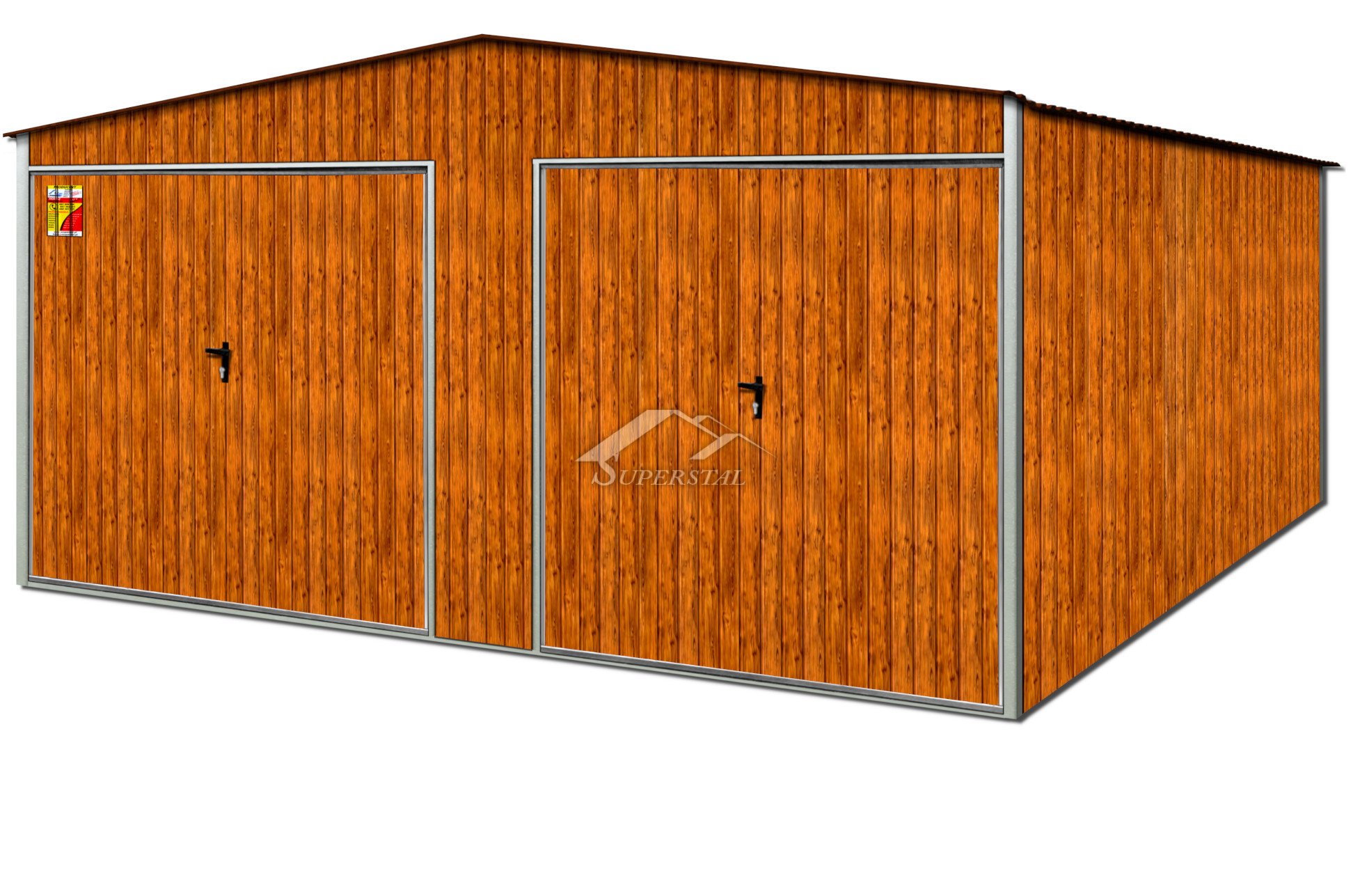 Nagyon szép famintázat tökéletesen illeszkedik bármilyen környezetbe, eredeti jelleget kölcsönözve a lemezgarázsnak. A gyártási folyamatban felhasznált tartós megbízható acél anyagok pedig hozzájárulnak az általunk gyártott garázsok tartósságához, megbízhatóságához hosszú éveken keresztül.