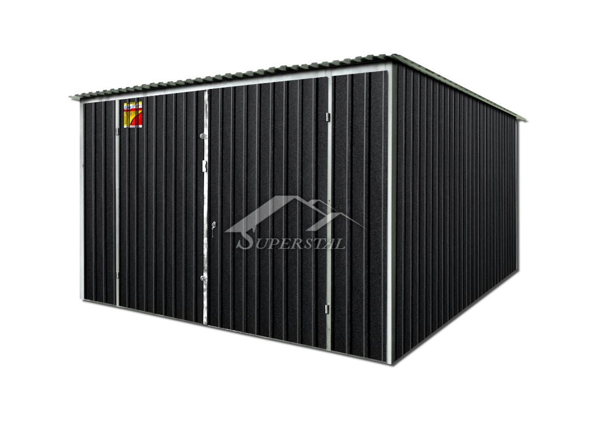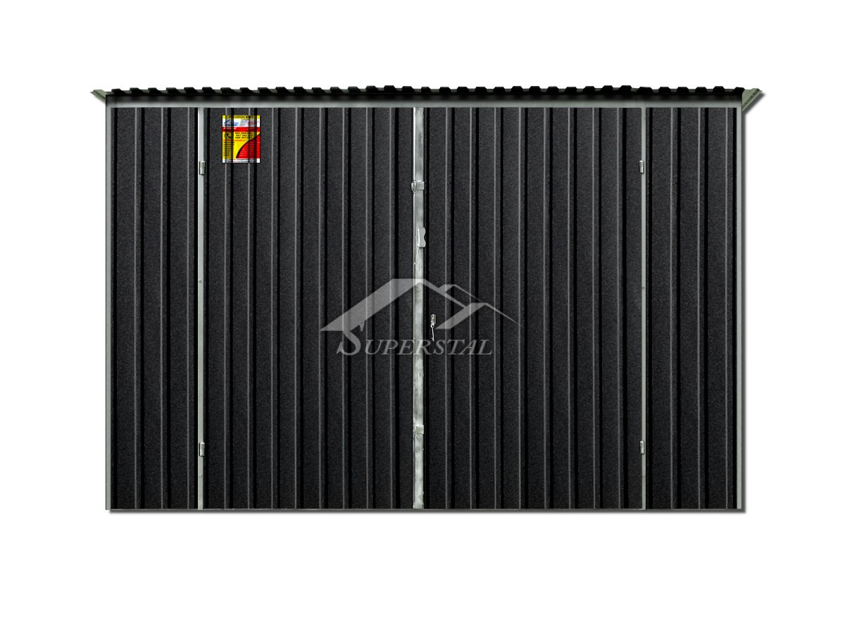 LEMEZGARÁZS GRAFIT SZÍNBEN 4X7 - HÁTRA LEJTŐ TETŐ, DUPLASZÁRNYAS KAPU