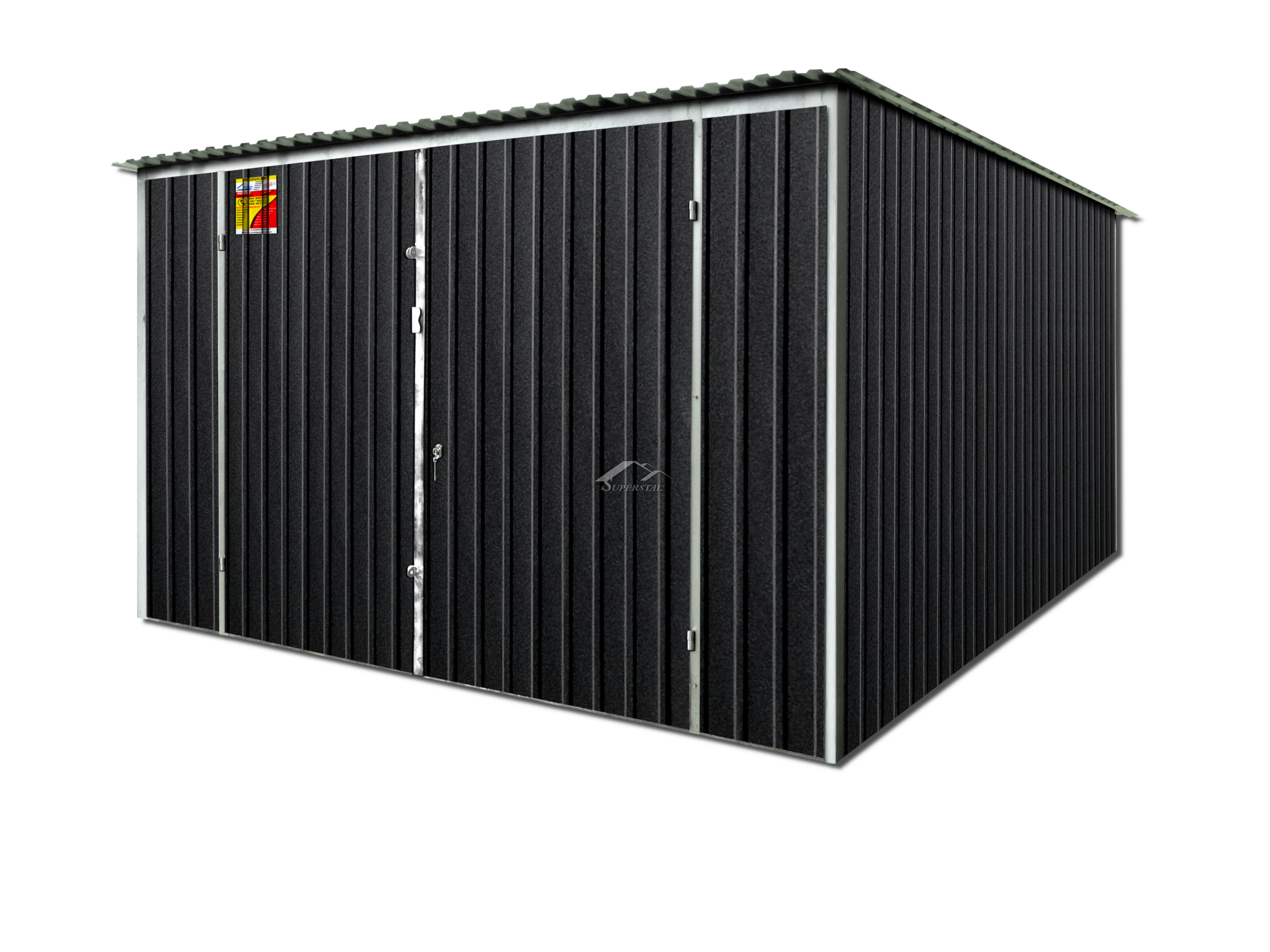• MATT GRAFIT színű akril lemezzel borított lemegarázs- függőlegesen, keskenyen bordázott lemezekkel