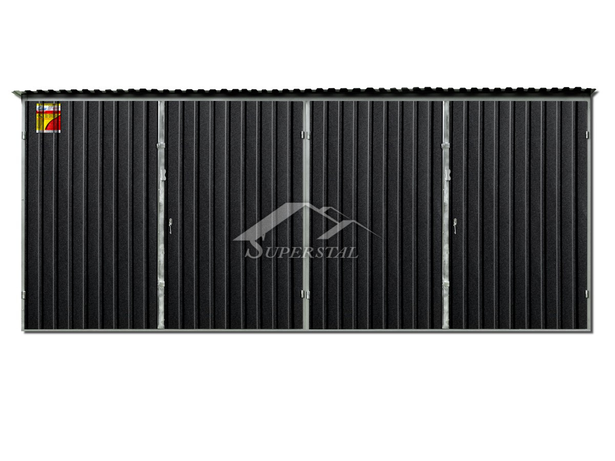 LEMEZGARÁZS GRAFIT SZÍNBEN 7X5 - HÁTRA LEJTŐ TETŐ, 2x DUPLASZÁRNYAS KAPUAz akril színes lemezgarázs nagyszerű választás azok számára, akik értékelik a pénztárcabarát megoldásokat a megújult technológiával ötvözve!