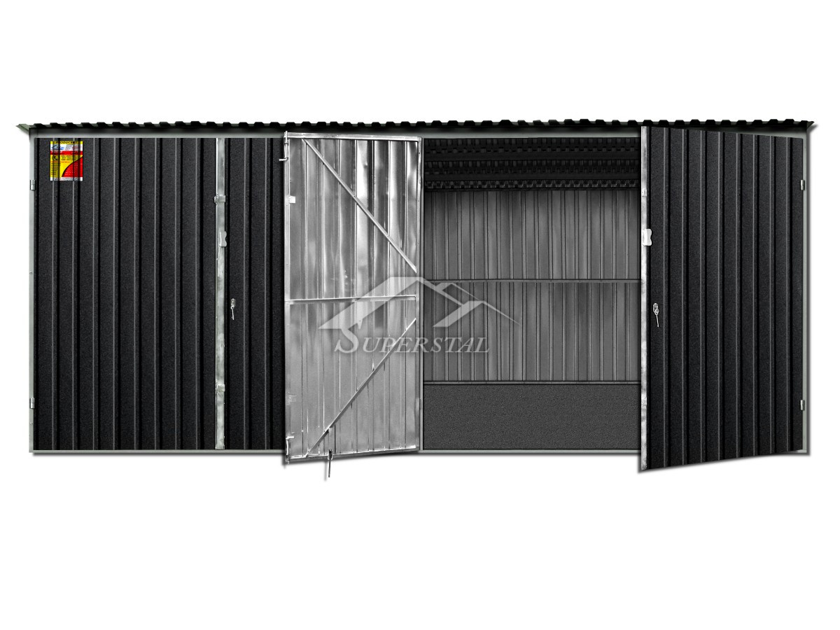 LEMEZGARÁZS GRAFIT SZÍNBEN 7X7 - HÁTRA LEJTŐ TETŐ, 2x DUPLASZÁRNYAS KAPU