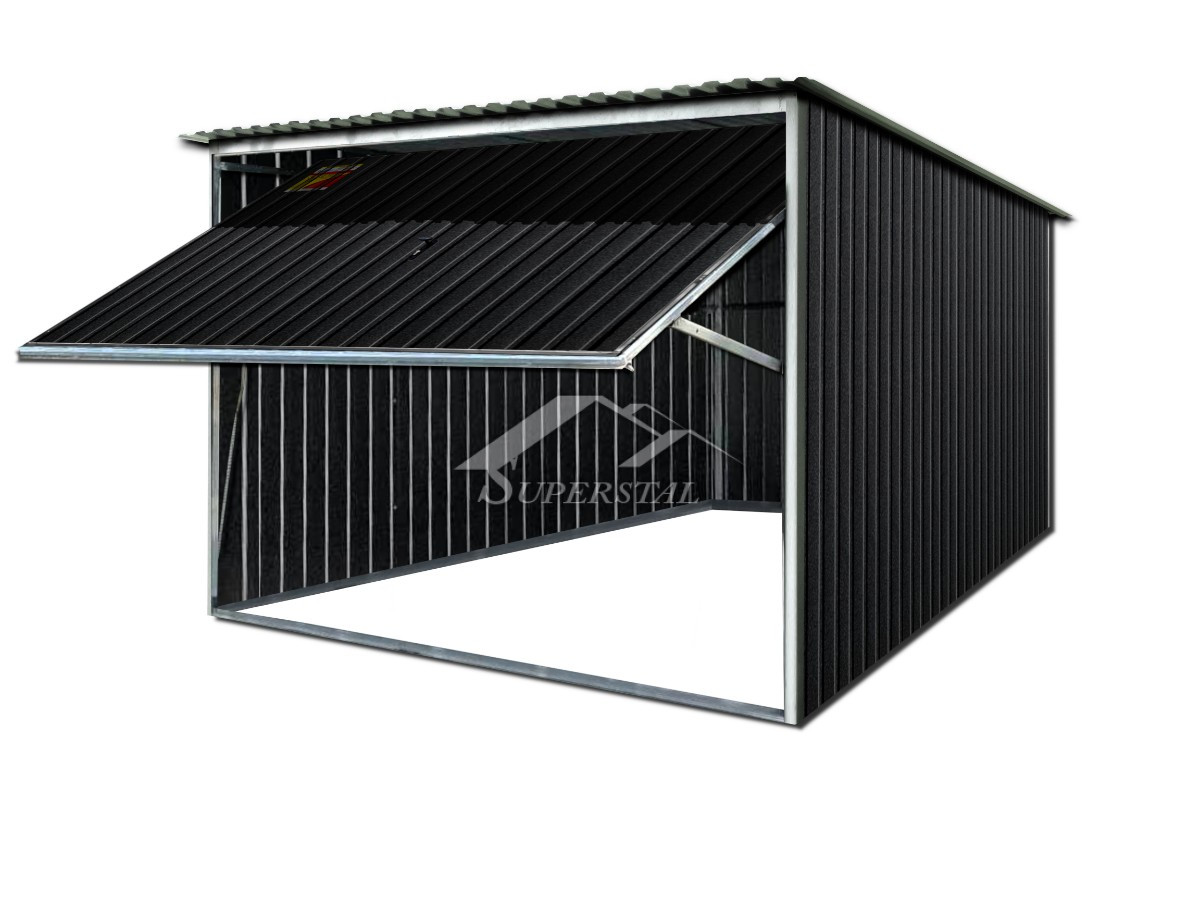 LEMEZGARÁZS GRAFIT SZÍNBEN 3X3 - HÁTRA LEJTŐ TETŐ, BILLENŐKAPU