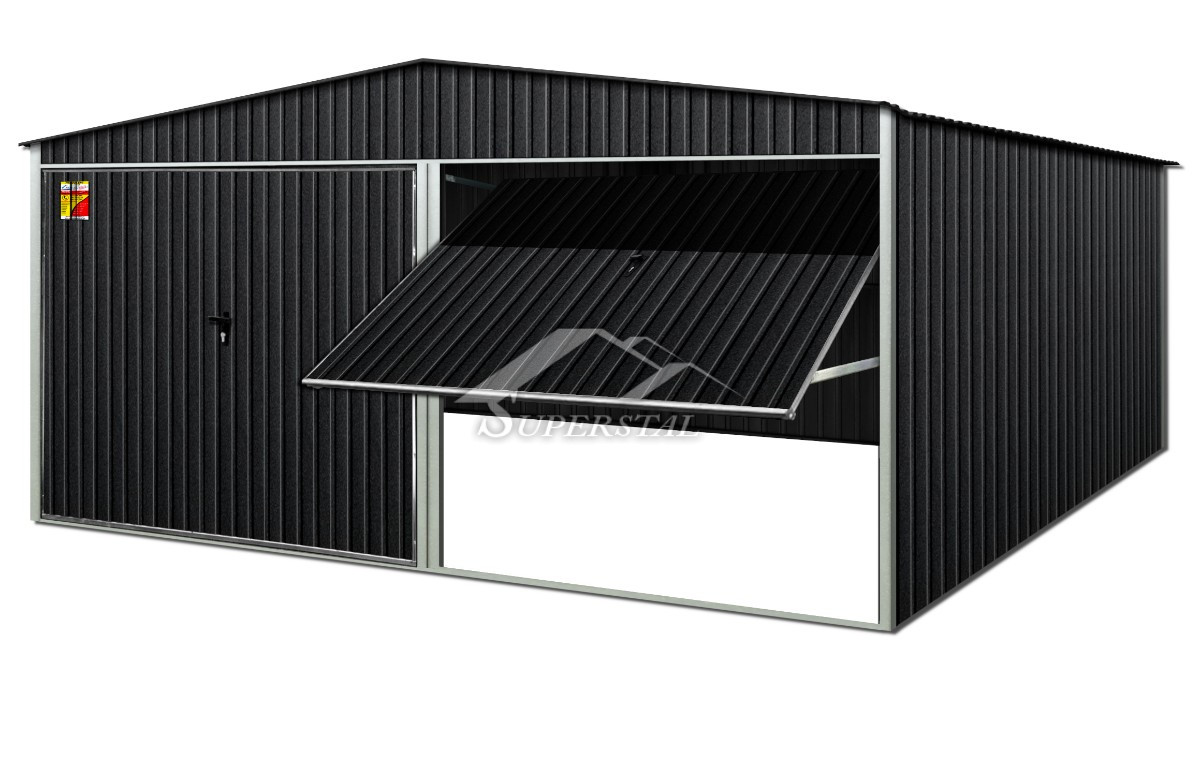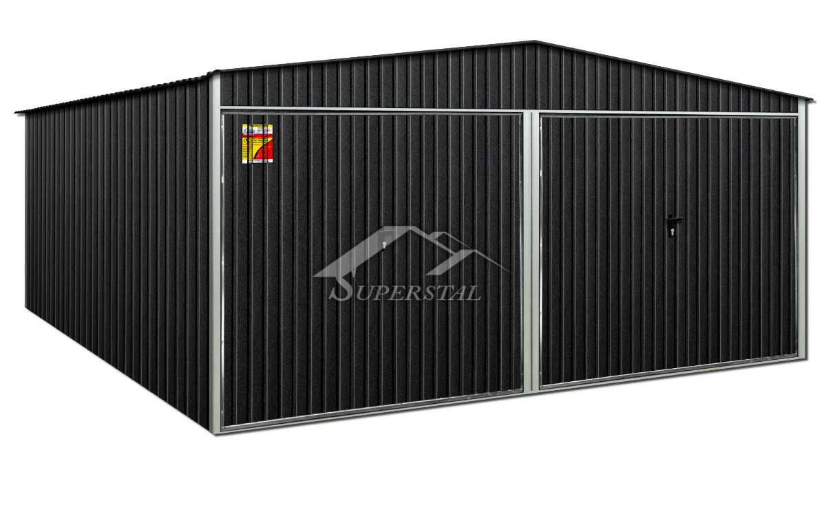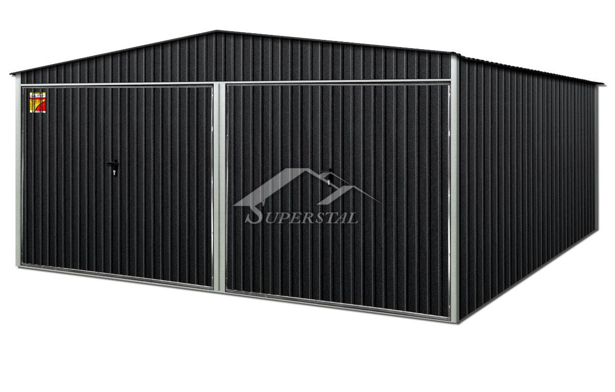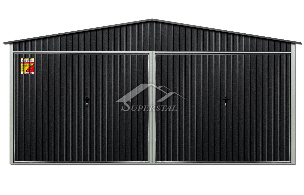 LEMEZGARÁZS GRAFIT SZÍNBEN 6X7 - KÉT OLDALRA LEJTŐ TETŐ, 2x BILLENŐKAPU