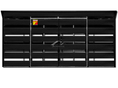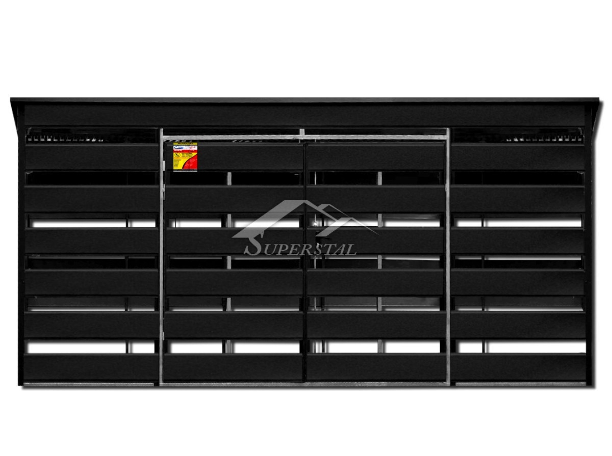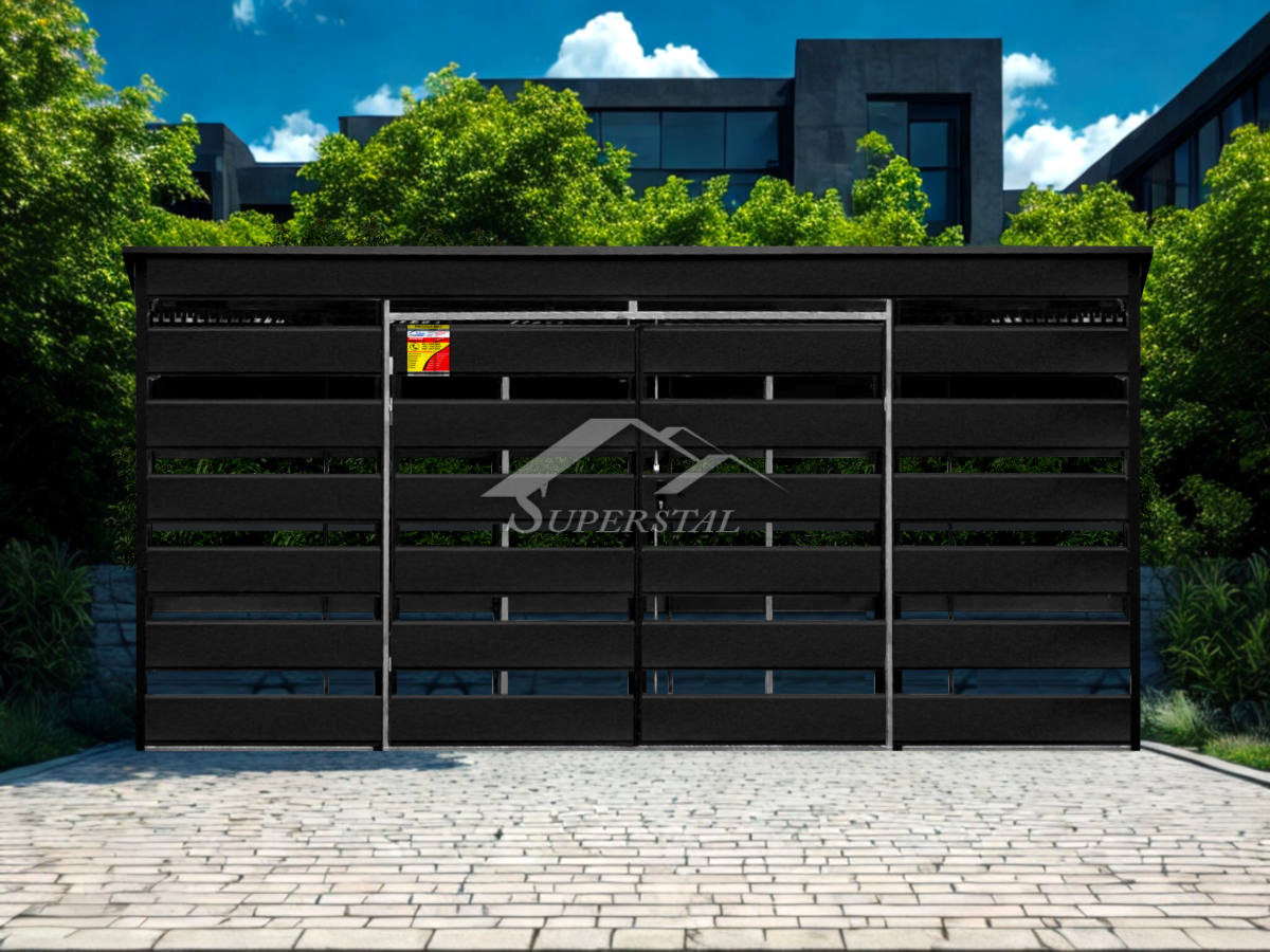 SZEMETESKUKA TÁROLÓ SMK  5X2,5M , SZÉLES DUPLASZÁRNYAS KAPUVAL, VÍZSZINTES PANELLAL MATT FEKETE SZÍNBEN
