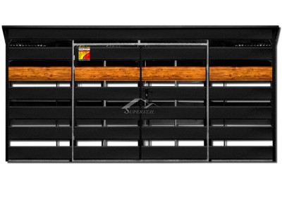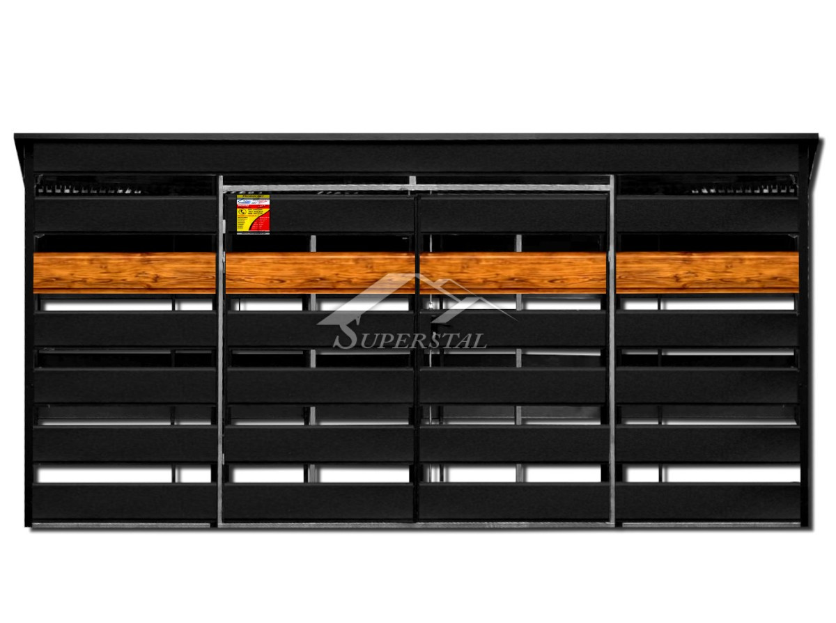 SZEMETESKUKA TÁROLÓ SMK 4,5X2 , DUPLASZÁRNYAS KAPUVAL, VÍZSZINTES PANELLAL MATT FEKETE SZÍNBEN FAMINTÁS BETÉTTELSzeretnéd frissíteni házad környezetét? Szeretnéd ha a szemetes kukatárolód nem csak funkcionális, hanem esztétikus és stílusos lenne?