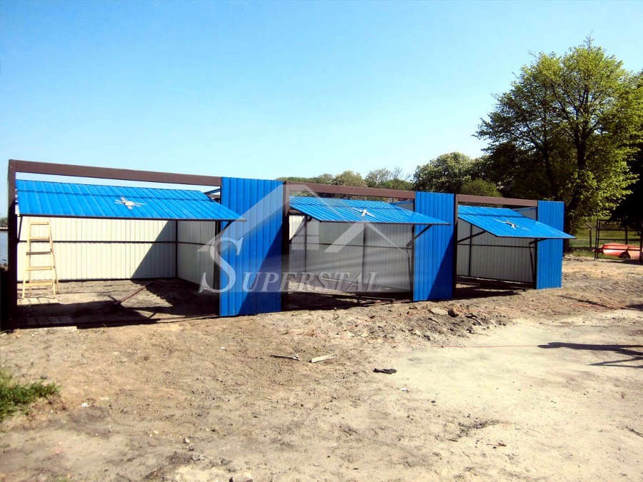 erős és tartós szerkezetét osztófalak erősítik. Egy épületben 3, egyenként 4m x 6m méretű, belső falakkal elválasztott garázsállás található. A fényes lemeznek köszönhetően a garázs esztétikus látványt nyújt.