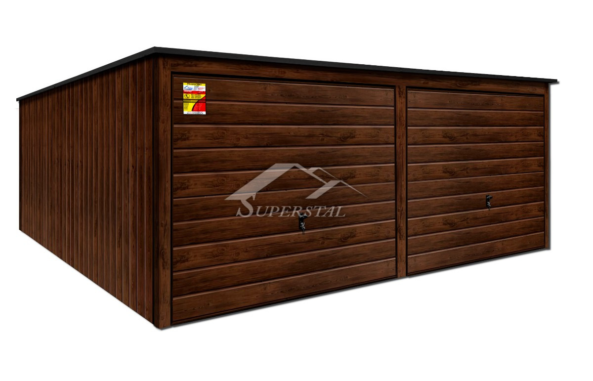 FAMINTÁS LUX GARÁZS 6X8 - HÁTRA LEJTŐ TETŐ, KÉT BILLENŐKAPU, SZEGŐKKEL A KÜLSŐ SARKOKON ÉS A TETŐ ÉLEIN