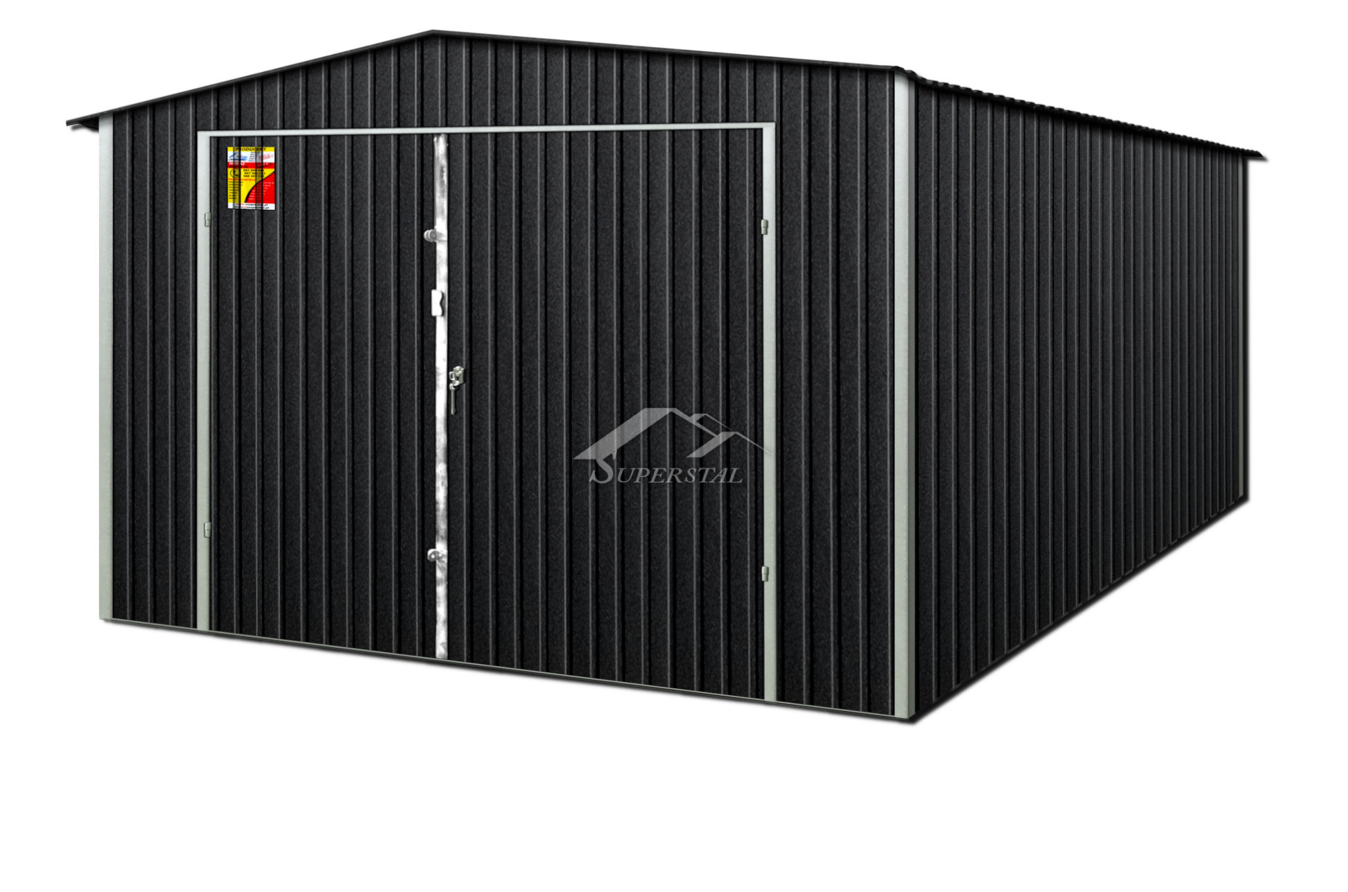LEMEZGARÁZS GRAFIT SZÍNBEN 5X5 - KÉT OLDALRA LEJTŐ TETŐ, DUPLASZÁRNYAS KAPU